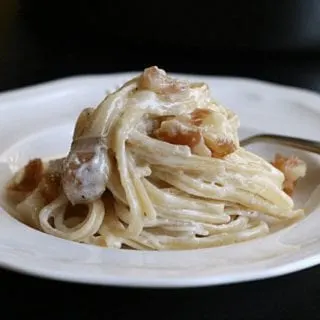 Creamy alfredo sauce with rich Parmesan and crispy bites of prosciutto elevate this easy pasta dish.