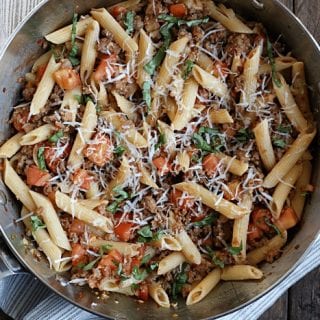 This Italian Sausage Pizza Pasta combines two of my family's favorite meals - pizza & pasta - for an easy weeknight meal.