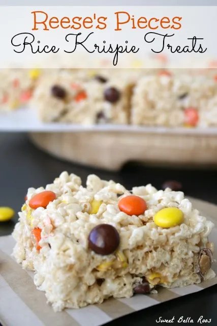 These look sooo yummy! I definitely have a soft spot for Reese's pieces and rice krispie treats. Can't wait to try these. Thanks for sharing!