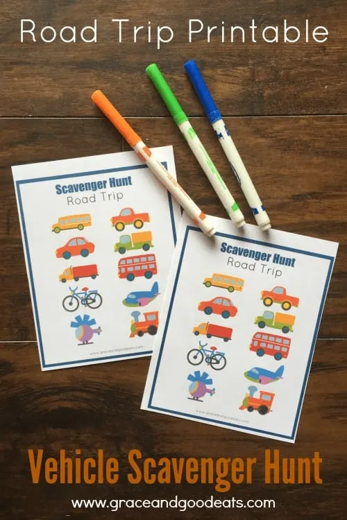 Two hours is a fairly manageable trip but I still like to pack a variety of activities to keep the kiddos busy- like this Road Trip Vehicle Scavenger Hunt; it helps to cut down on the “are we there yet!?” questions. I created this fun scavenger hunt printable for the girls with different vehicles for them to search for while we drive. Sophia likes to draw on “X” to mark off each one after she’s seen that vehicle and Isabella likes to draw tally marks beside each picture to keep track of how many we’ve seen. (Be sure to pack pencils, pens, or markers!)
